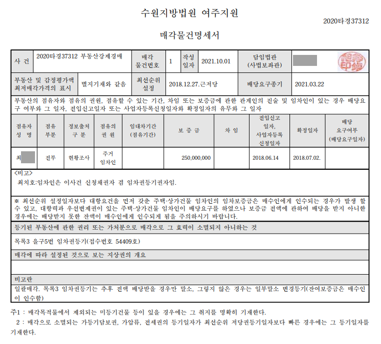 본 2층 전원주택은 전입 신고와 확정일자를 받은 임차인으로,