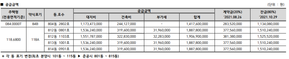 | 공급금액(가격) | 입주예정일 |